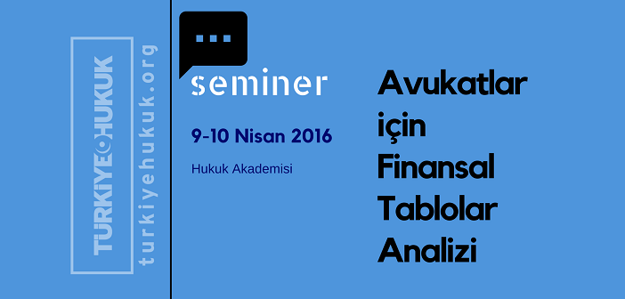 Avukatlar için Finansal Tablolar Analizi konulu seminer programı Hukuk Akademisi tarafından düzenlenmektedir.