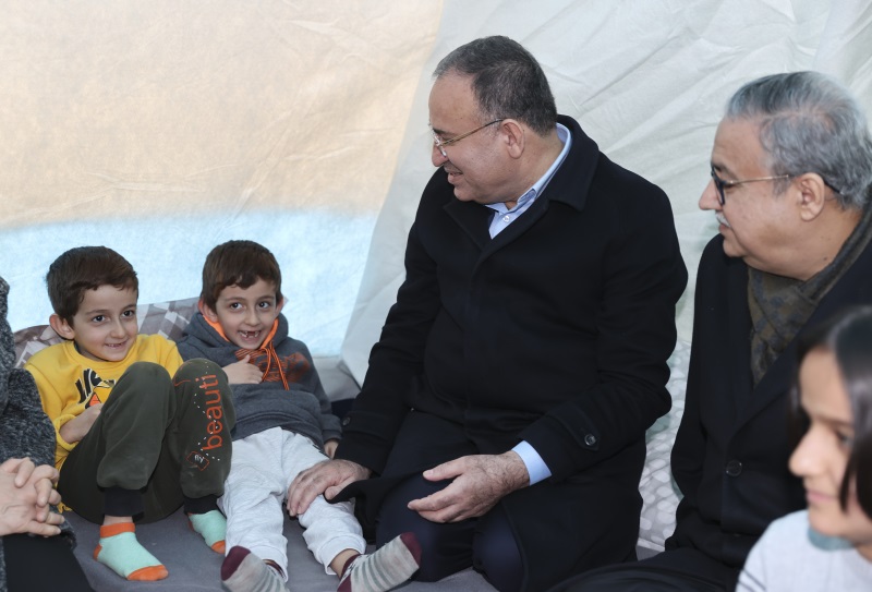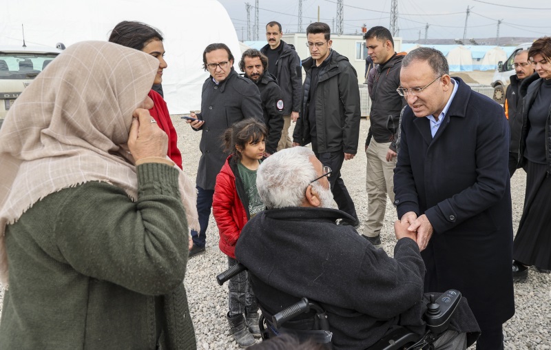 Diyarbakır’da Silvan Karayolu kenarında depremzedelerin kaldığı çadır kenti ziyaret eden Adalet Bakanı Bekir Bozdağ, geçmiş olsun dileklerini ileterek vatandaşların taleplerini dinledi.