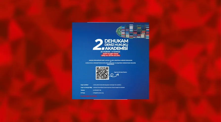 Ankara Üniversitesi Deniz Hukuku Ulusal Araştırma Merkezi (DEHUKAM) ve Dokuz Eylül Üniversitesi Ege Bölgesi Uygulama ve Araştırma Merkezi (DEU EBAMER) iş birliğinde düzenlenen “DEHUKAM Deniz Hukuku Akademisi” eğitim programı, 30 Haziran – 11 Temmuz 2025 tarihleri arasında İzmir Ticaret Odası Giriş Kat Eğitim Salonu’nda gerçekleştirilecek.