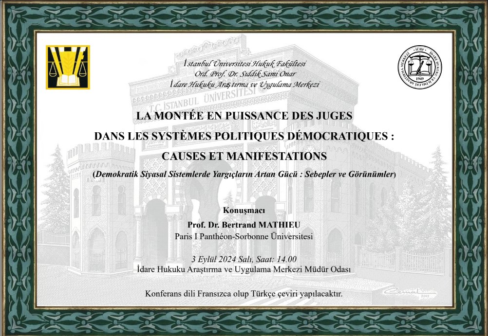 Konferans, İstanbul Üniversitesi Hukuk Fakültesi Ord. Prof. Dr. Sıddık Sami Omar İdare Hukuku Araştırma ve Uygulama Merkezi tarafından düzenlenmektedir.