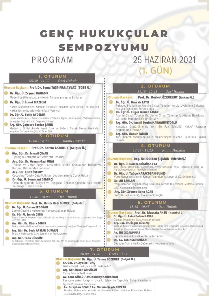 Selçuk Üniversitesi Hukuk Fakültesi tarafından Genç Hukukçular Sempozyumu 2021 düzenlenmekte.