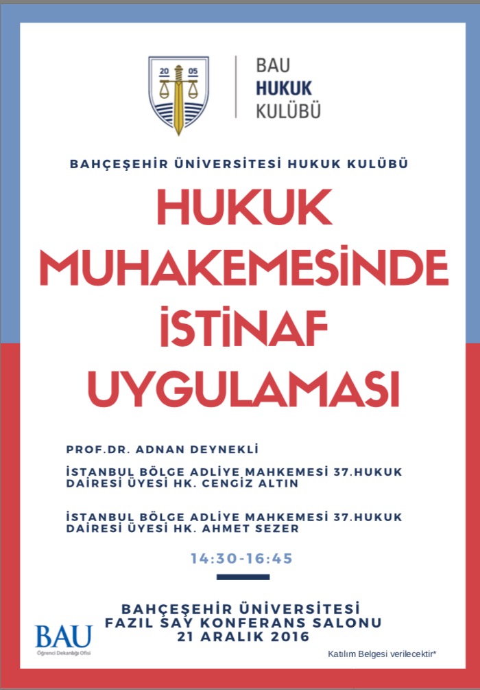 Hukuk Muhakemesinde İstinaf Uygulamaları, Bahçeşehir Üniversitesi Hukuk Kulübü tarafından düzenlenmektedir.