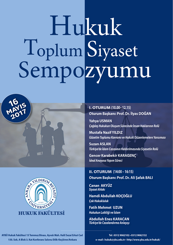 Hukuk – Toplum Siyaset Sempozyumu, Ankara Yıldırım Beyazıt Üniversitesi (AYBÜ) Hukuk Fakültesi tarafından düzenlenmektedir.