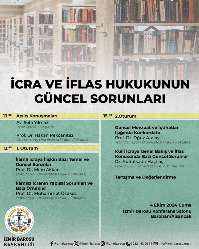Etkinlikler İcra ve İflas Hukukunun Güncel Sorunları Yazar Türkiye Hukuk - FacebookXWhatsAppLinkedinEmail Etkinlik, İzmir Barosu tarafından düzenlenmektedir. Bunu paylaş: X'te paylaş (Yeni pencerede açılır) X Facebook üzerinde paylaş (Yeni pencerede açılır) Facebook LinkedIn'de paylaş (Yeni pencerede açılır) LinkedIn Arkadaşınıza e-posta ile bağlantı gönderin (Yeni pencerede açılır) E-posta