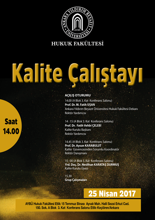 Kalite Çalıştayı, Ankara Yıldırım Beyazıt Üniversitesi (AYBÜ) Hukuk Fakültesi tarafından düzenlenmektedir.