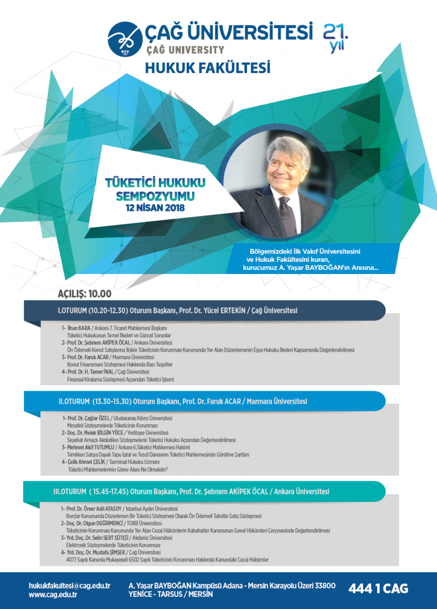 Tüketici Hukuku Sempozyumu, Çağ Üniversitesi Hukuk Fakültesi tarafından düzenlenmektedir.