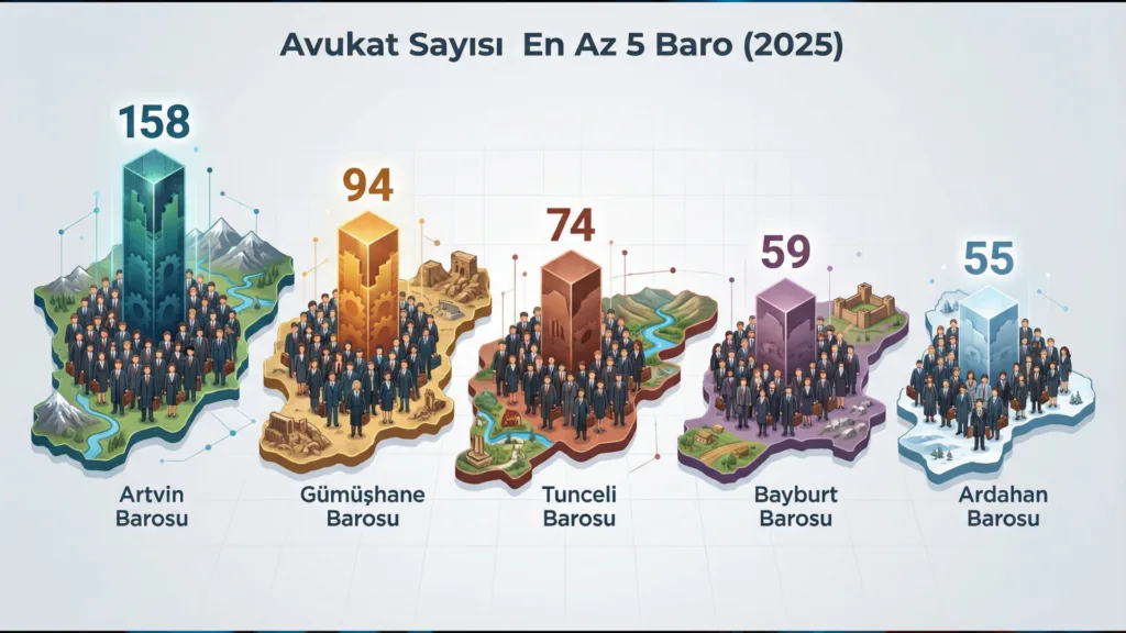 2025 İtibarıyla Avukat Sayısı En Az 5 Baro
