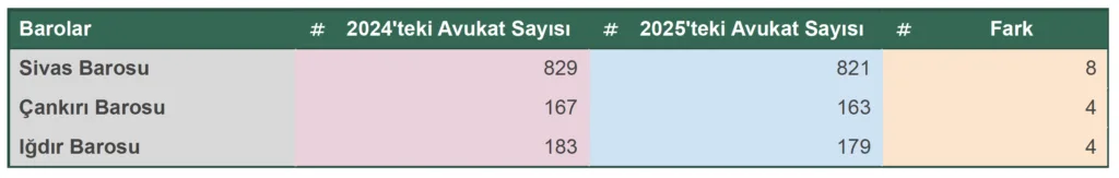 2025’te Sivas, Çankırı ve Iğdır Barolarının Avukat Sayısı Düştü