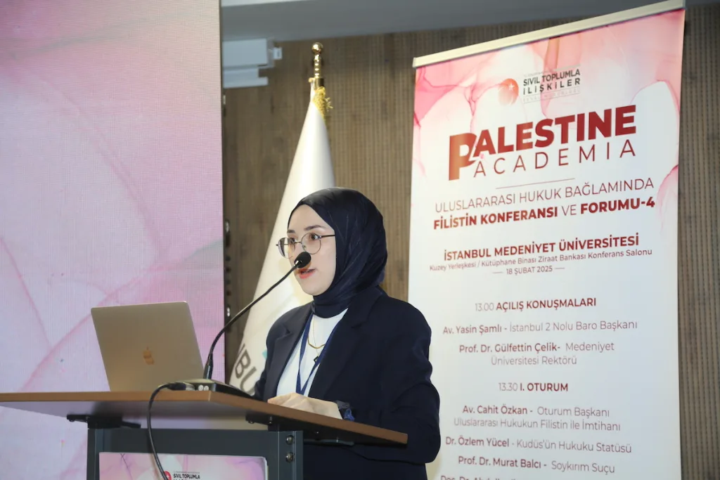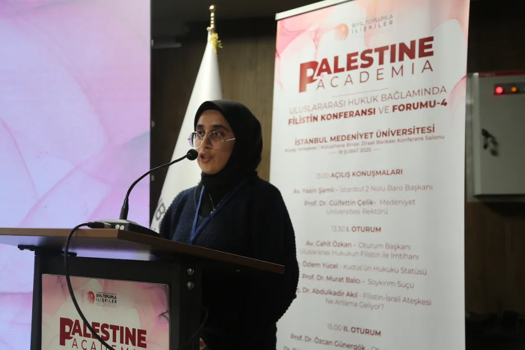 İstanbul Medeniyet Üniversitesinde faaliyet gösteren İdeal Medeniyet Hukuk Kulübü üyelerinden Ayşe Feraye Savan, “İsrail’in Filistinli Çocuklar Üzerindeki Hak İhlalleri: Birleşmiş Milletler Perspektifi”; Erva Esma Güler, “Filistinlilerin Mültecilik Statüsü ve Geri Dönüş Hakkı” ve Senanur Zerey, “İnsan Hakları İhlalleri Bağlamında Filistin Meselesi” başlıklı sunumlarıyla Konferansın öğrenci forumu bölümünde katkı sundular. Öğrenci forumu Dr. Miray Azaklı Köse tarafından yönetildi.