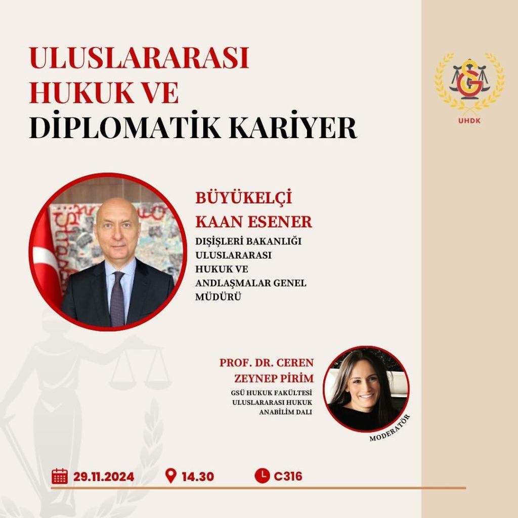Etkinlikler Uluslararası Hukuk ve Diplomatik Kariyer Yazar Türkiye Hukuk - FacebookXWhatsAppLinkedinEmail Etkinlik, Galatasaray Üniversitesi Uluslararası Hukuk ve Diplomasi Kulübü tarafından düzenlenmektedir. Kayıt Bunu paylaş: X'te paylaş (Yeni pencerede açılır) X Facebook üzerinde paylaş (Yeni pencerede açılır) Facebook LinkedIn'de paylaş (Yeni pencerede açılır) LinkedIn Arkadaşınıza e-posta ile bağlantı gönderin (Yeni pencerede açılır) E-posta
